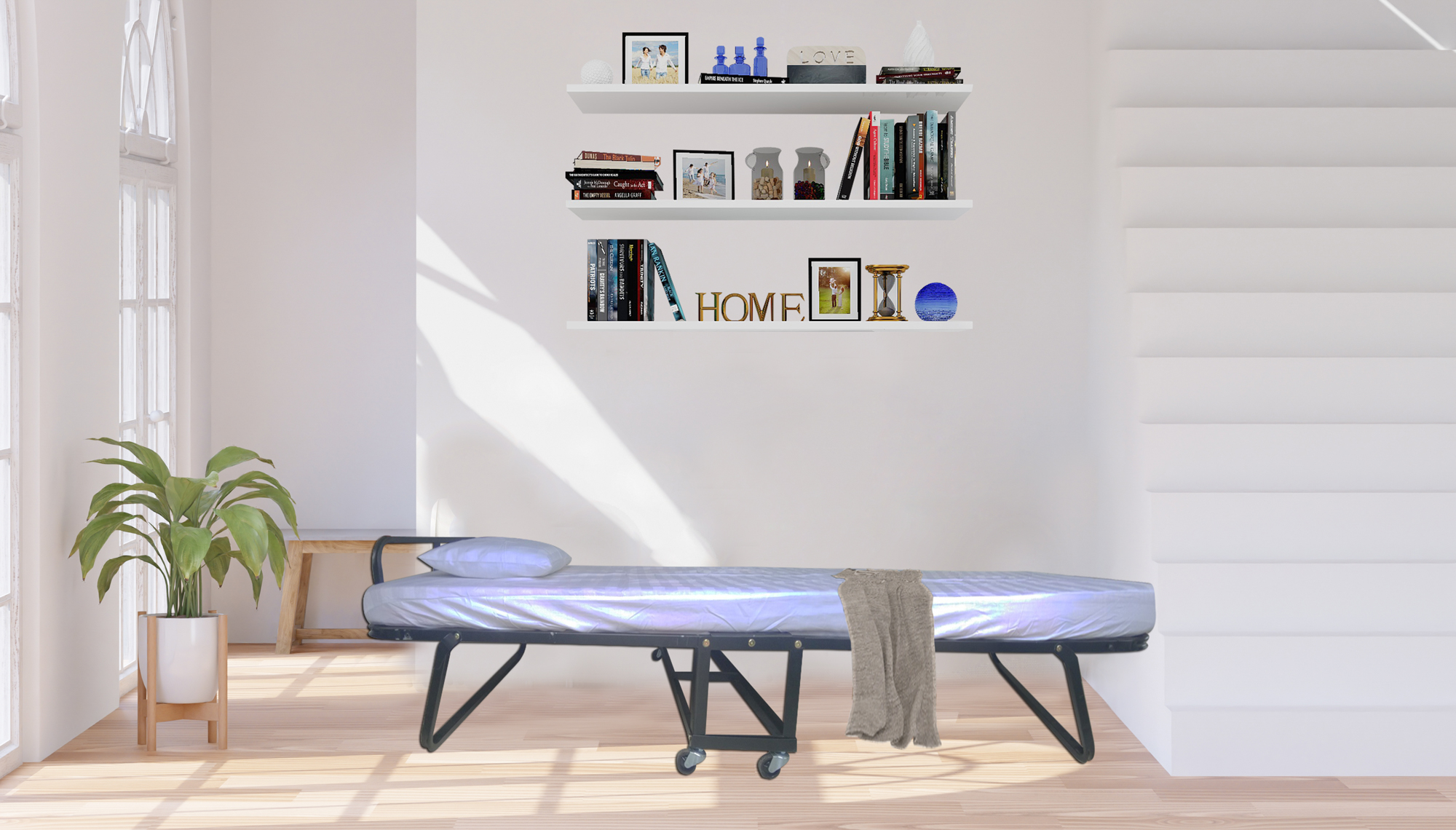 - Giường sắt có bánh xe đẩy đến vị trí mong muốn.